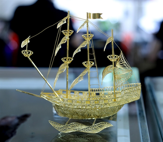 A miniature schooner crafted by siversmiths in the village of Định Công. VNS Photo Đoàn Tùng. |