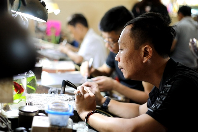 Besides fine jewellery, Anh has developed a line of silver paintings and designed silver samples following customer requests. VNS Photo Đoàn Tùng. |