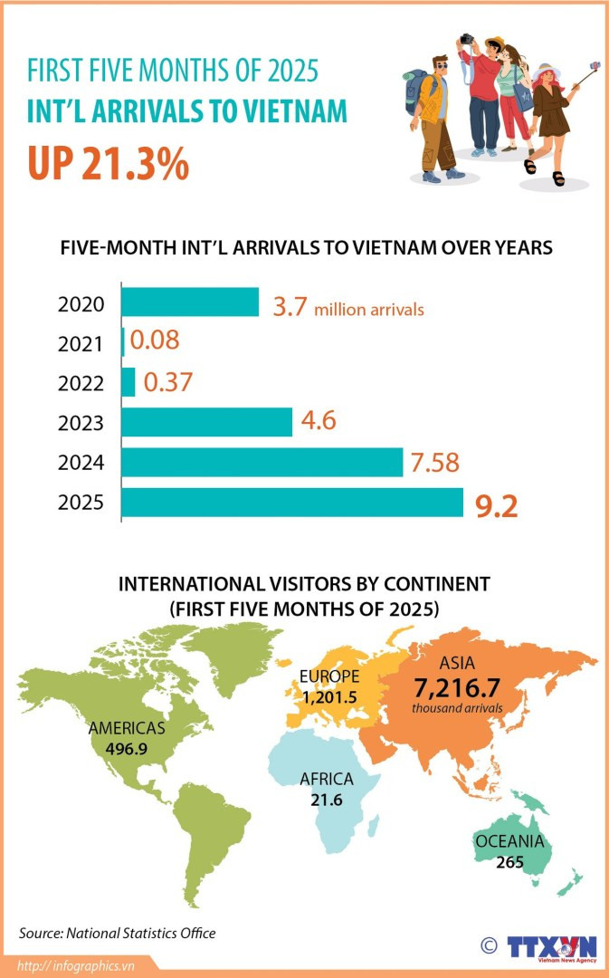 In the central city of Hue, hosting the Visit Year 2025, along with the Hue Festival, established the former imperial city as a top destination. To date, Hue has welcomed more than 2 million visitors, a 63% increase year-on-year, including nearly 900,000 international arrivals. Tourism activities in the city generated 2.6 trillion VND in the first quarter of this year.