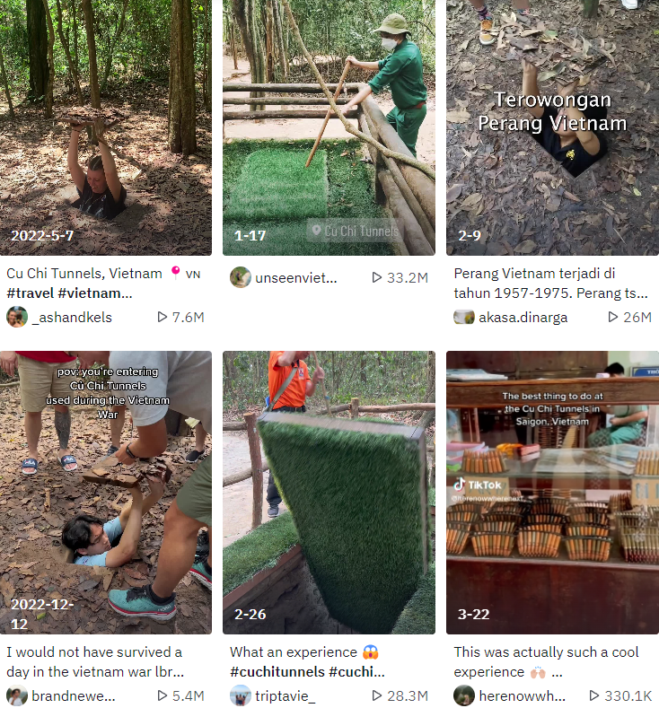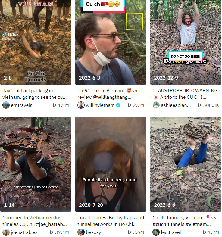 Typing the keyword "Cu Chi tunnels", one can see dozens of videos appearing on Tik Tok with content about the historical site.