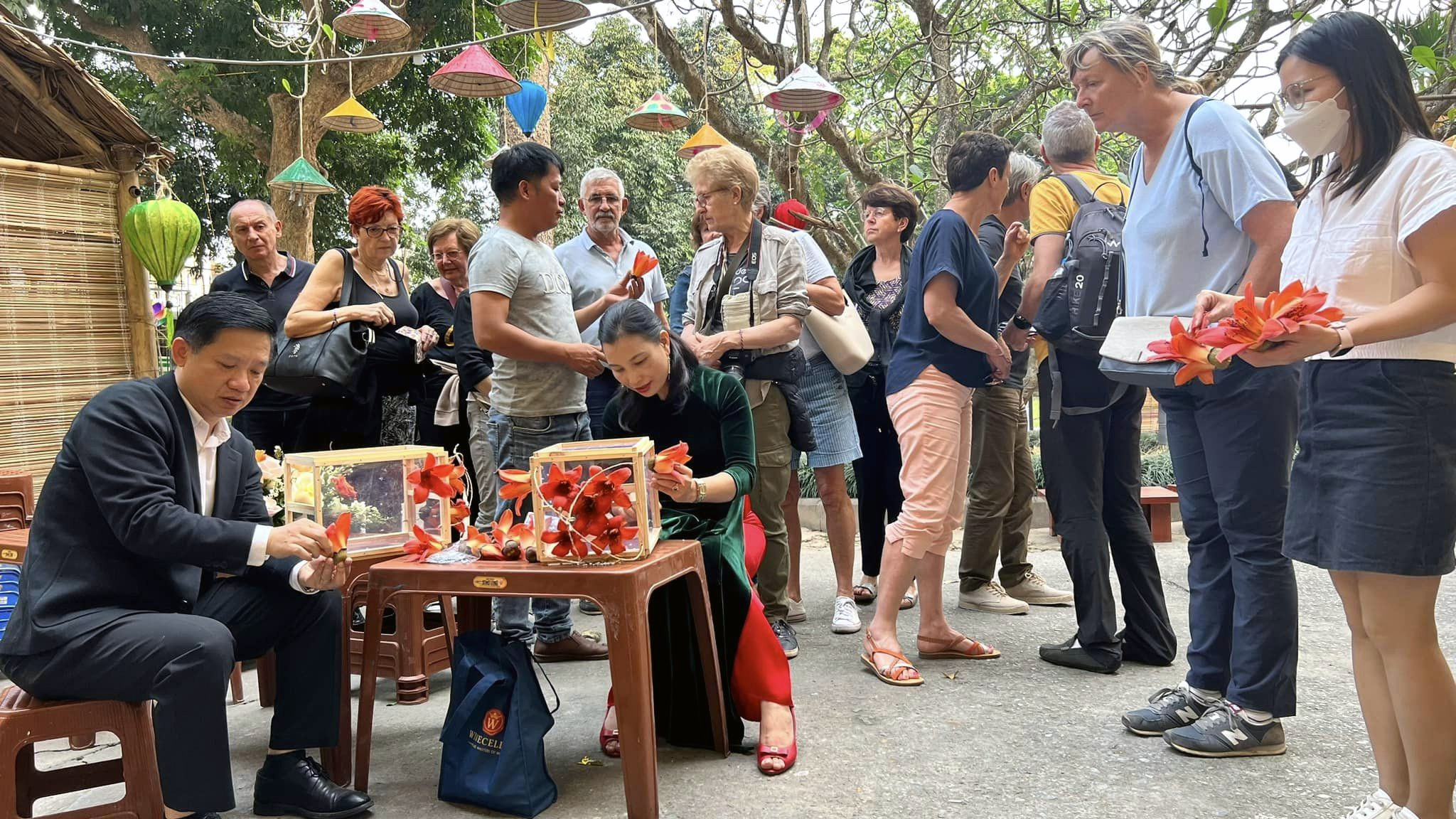 Welcoming guests aboard recently on the Heritage Binh Chuan cruise ship were drum sounds, echoing amid the quiet of Lan Ha Bay. About 30 foreign travelers from the US, Germany, UK, Singapore, Myanmar and Israel were excited to participate in the tour.