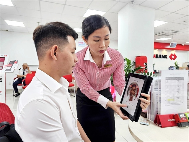 On Tuesday customer T from HCM City’s District 5, went to the Sài Gon Thương Tín Commercial Joint Stock Bank (Sacombank) branch on Nguyễn Trãi Street seeking help to update biometric information on the banking app, as he could not do it at home.