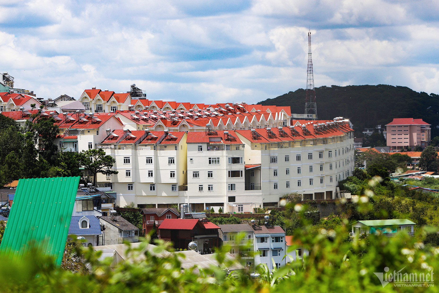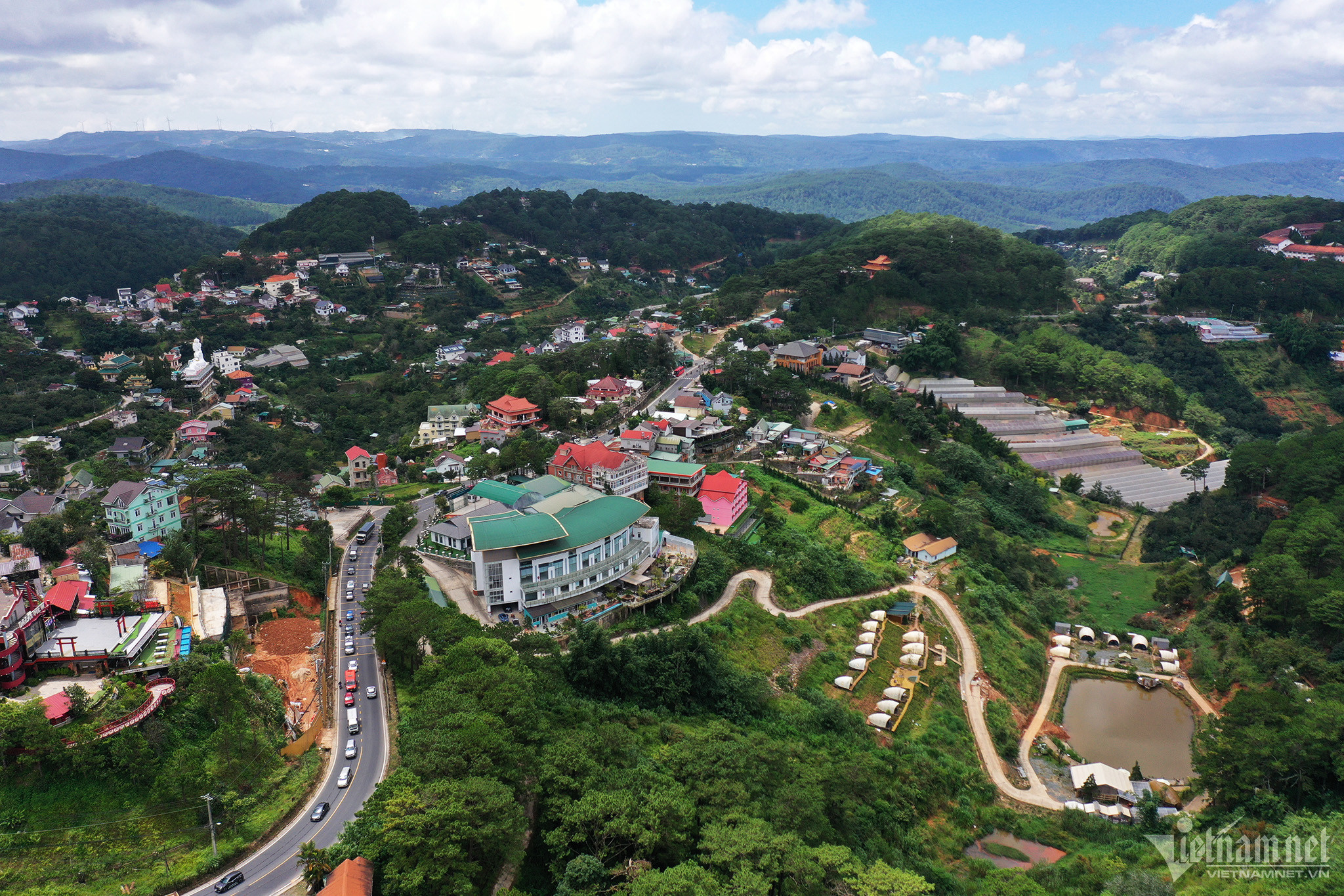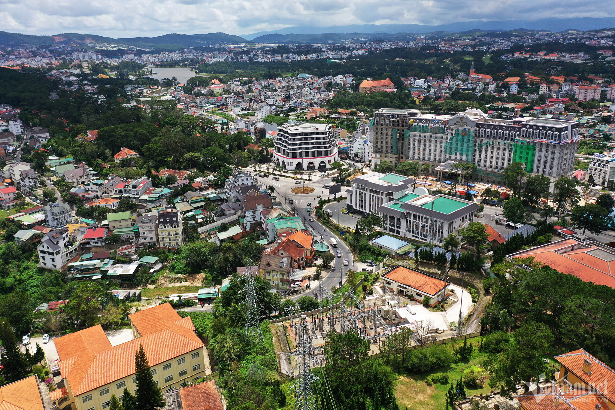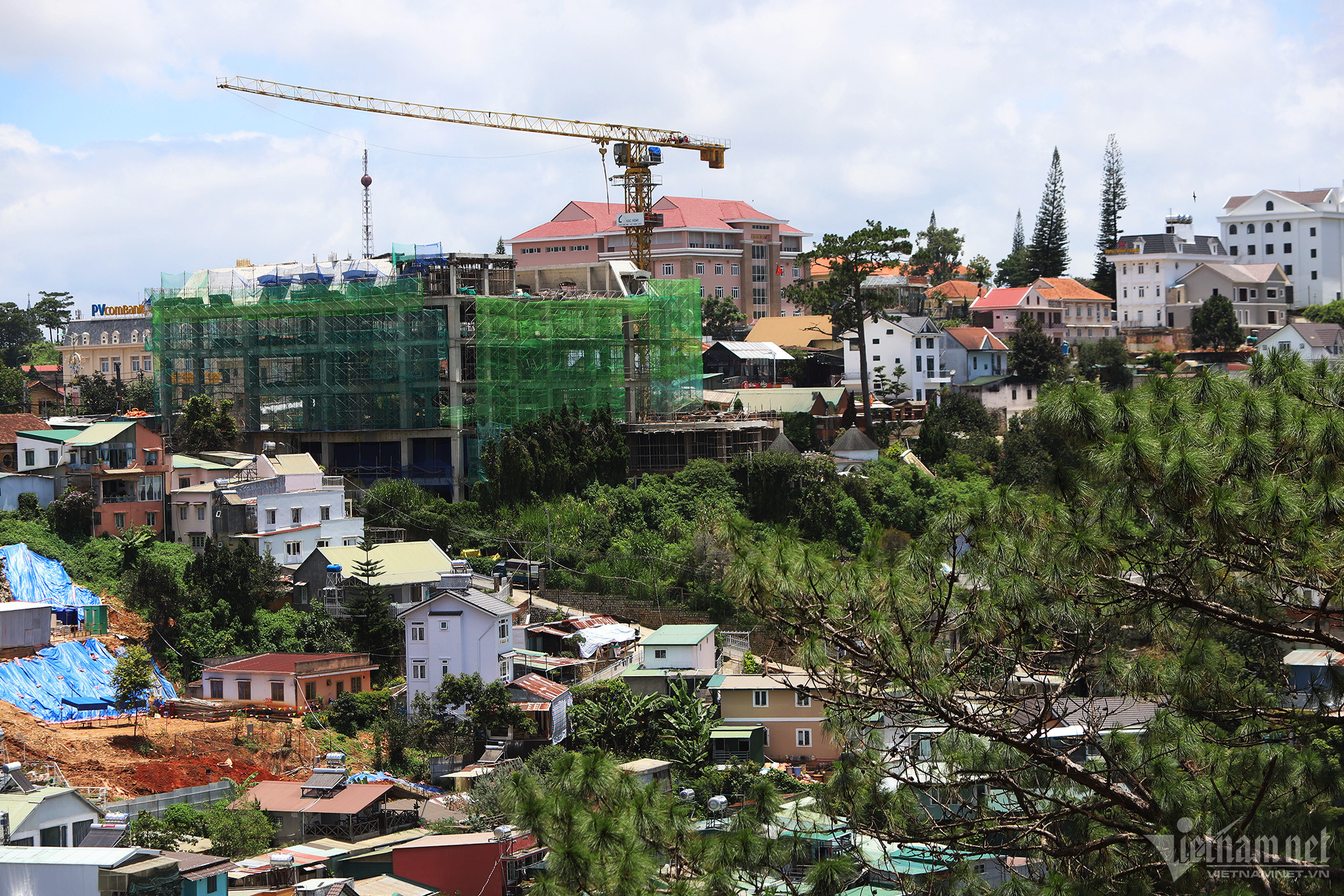 Close-up of construction works on Hung Vuong Street in the city center. The number of tourist accommodation establishments in Lam Dong Province rose from 538 in 2006 to 2,400 in 2022.A multi-storey building is under construction in Ward 3 in Da Lat. Statistics show that by 2023, Lam Dong province has about 3,067 tourist accommodation establishments, mostly in Da Lat. A large number of homestay and housing projects have been implemented.Many works are built on hills, hillside areas, or agricultural land.A resort in Ward 4 in Da Lat put into operation recently.Many construction works have been built recently (3/4 Street, Da Lat city).A villa area is under construction in Ward 9.According to statistics from the Department of Agriculture and Rural Development in Lam Dong province, the urbanization rate in Lam Dong in general and Da Lat in particular is inversely proportional to the existing forest coverage. In 1997, the forest coverage of Lam Dong province reached 69%, which dropped to 51% in 2020. Particularly, the area of pine forest in the inner city fell from 350 hectares in 1997 to 150 hectares in 2018.According to Prof. Dr. Bao Huy, an independent consultant from the Forest Environment and Natural Resources Management (FREM), Da Lat has unsecured and unsustainable infrastructure planning. The city has been "concreted" too quickly, disrupting planning, and changing the city structure, and leading to a deteriorating landscape.For sustainable development, Da Lat needs a specific plan for urban infrastructure development. It must maintain the area of natural forest and improve the city's greenery, experts say.New buildings near Xuan Huong Lake - the iconic site of Da Lat City.