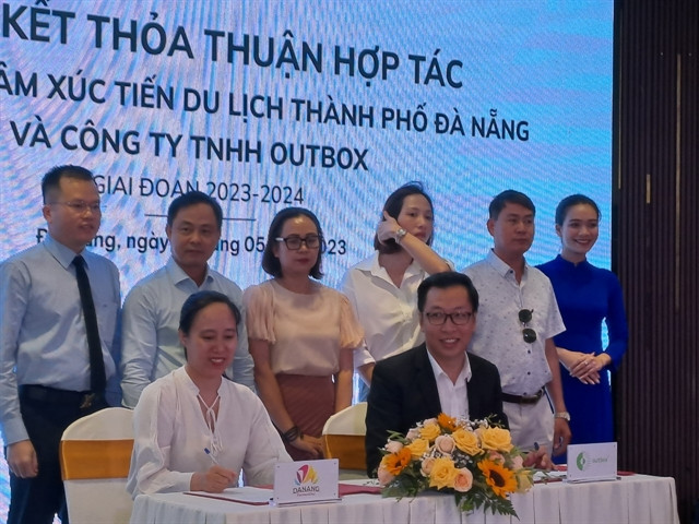 | An agreement event in building an index of destination attractiveness is signed between Đà Nẵng's tourism promotion centre and the travel market intelligence Outbox Company. It's the first-ever database in tourism of Đà Nẵng in surveying tourism service quality and satisfaction among travellers. VNS Photo Công Thành |