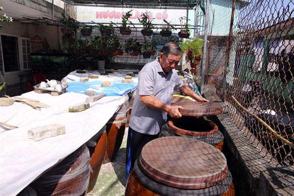 Tran Ngoc Vinh, 71, chairman of the village's Fish Sauce Trade Association, says more than 100 households practise the traditional technique in the town.