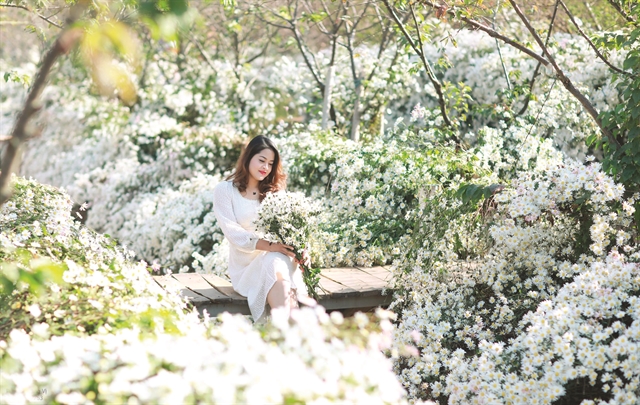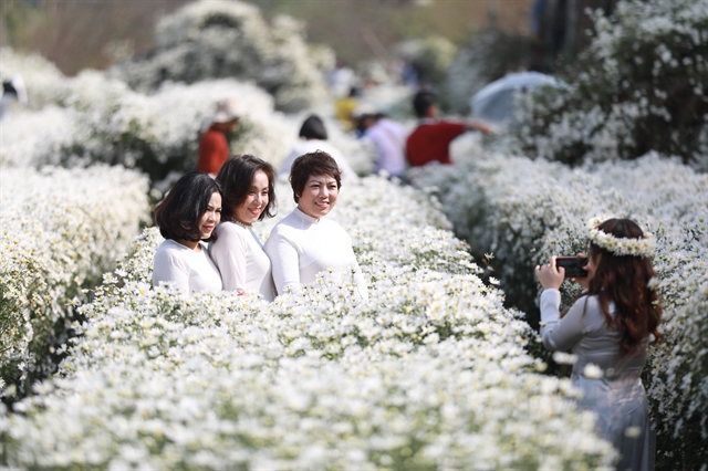 Taking photos with daisies has become a popular trendamong young people in Hanoi.