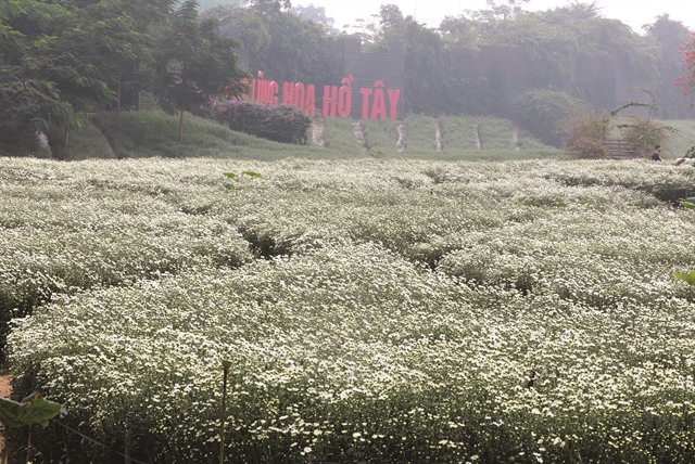 Daisies grow in many familiar places around the capital such as; the Red River rock beach, Tây Tựu flower village and Quảng An flower field, although the most famous is still Nhật Tân flower garden which has an immense white spread of daisies in full bloom.