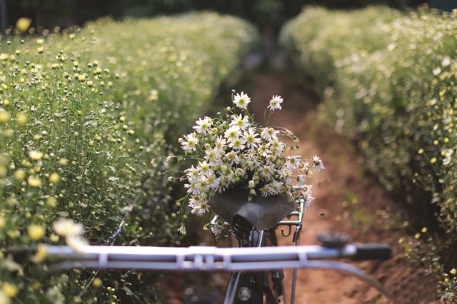 From around November, bicycles carrying daisy flowers on Thụy Khuê, Phan Đình Phùng and Thanh Niên streets are always crowded with people buying flowers and posing for photos.