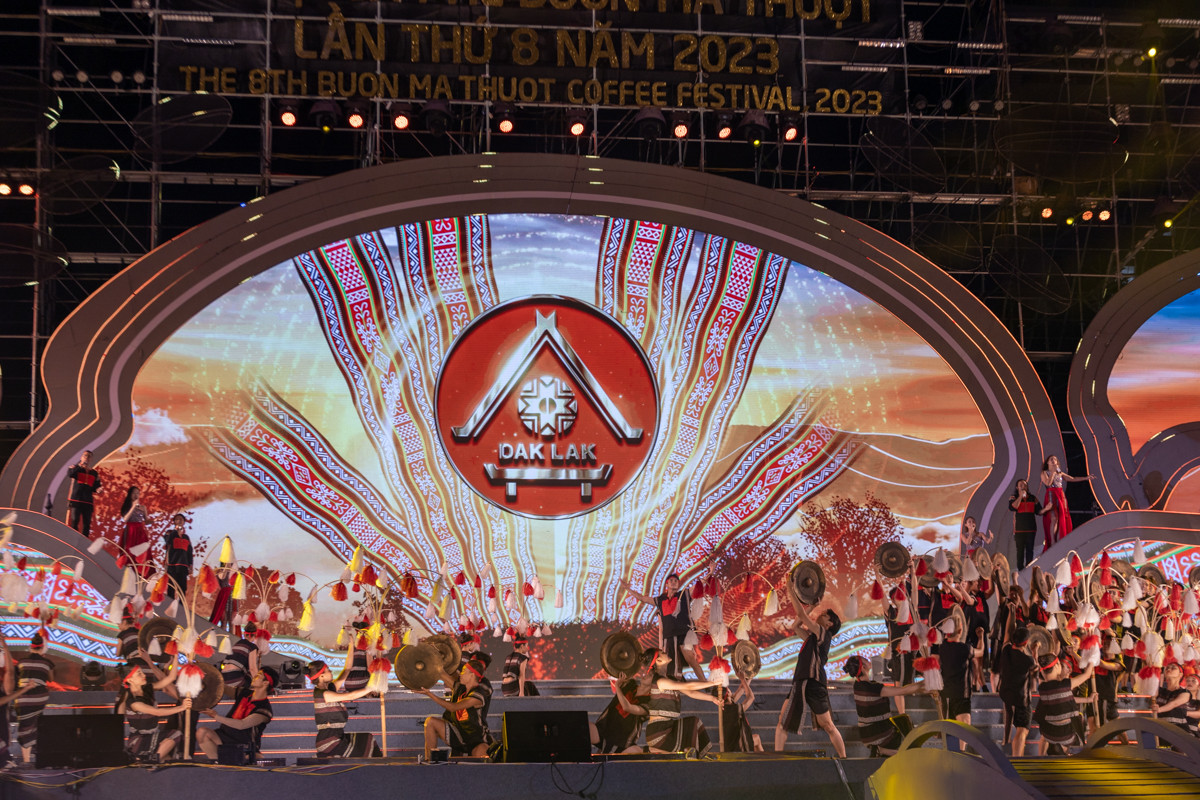 On a modern open stage, the performances were elaborately choreographed, imbued with the cultural identity of the Central Highlands, creating a scene of a rich Dak Lak land, with a unique culture and history of formation and the expansion of Buon Ma Thuot coffee to the world...