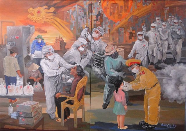 These are the outstanding works of a painting and photo contest co-organized by the Danang City Department of Culture, Sports and Tourism and the Danang Union of Literature and Arts Associations from August 20 to September 20, aimed at honoring the efforts of the local people and medical workers in fighting Covid-19. The contest attracted nearly 450 entries from 106 painters and photographers from 11 cities and provinces nationwide. At the exhibition, the organizer will award two first prizes, four second prizes, six third prizes and 10 consolation prizes for the best works.