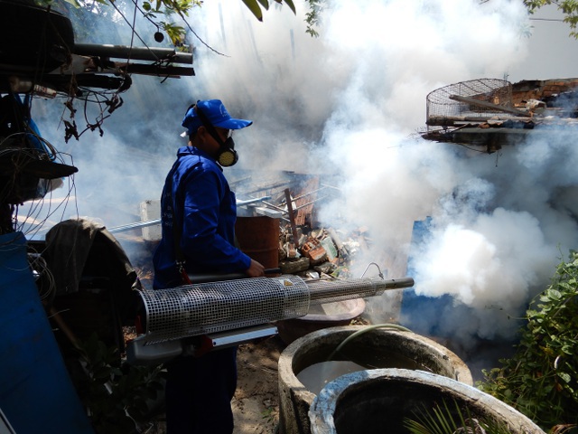 Chemicals sprayed to kill mosquitoes for the Zika virus prevention in Danang