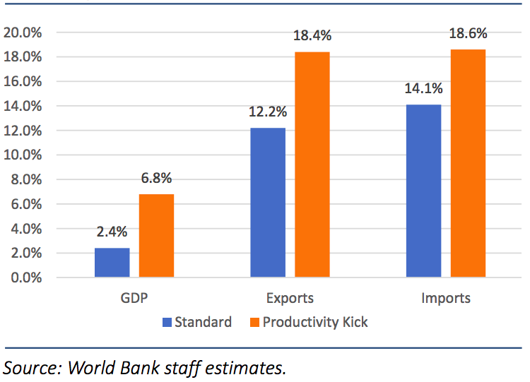 The report estimates that such reforms would result in a “productivity kick”, increasing GDP by 6.8%, relative to the baseline scenario, by 2030. The report highlights the need for Vietnam to increase capacity to handle certain key issues, including rules of origin, animal and plant sanitary standards, and investor-state dispute settlement.