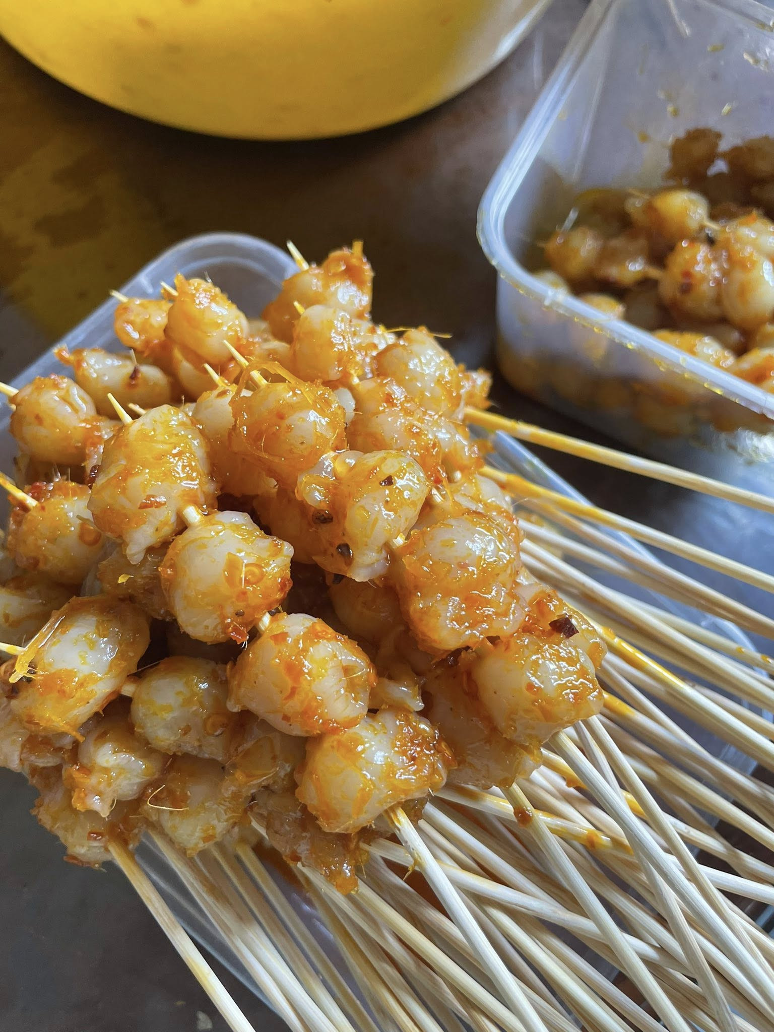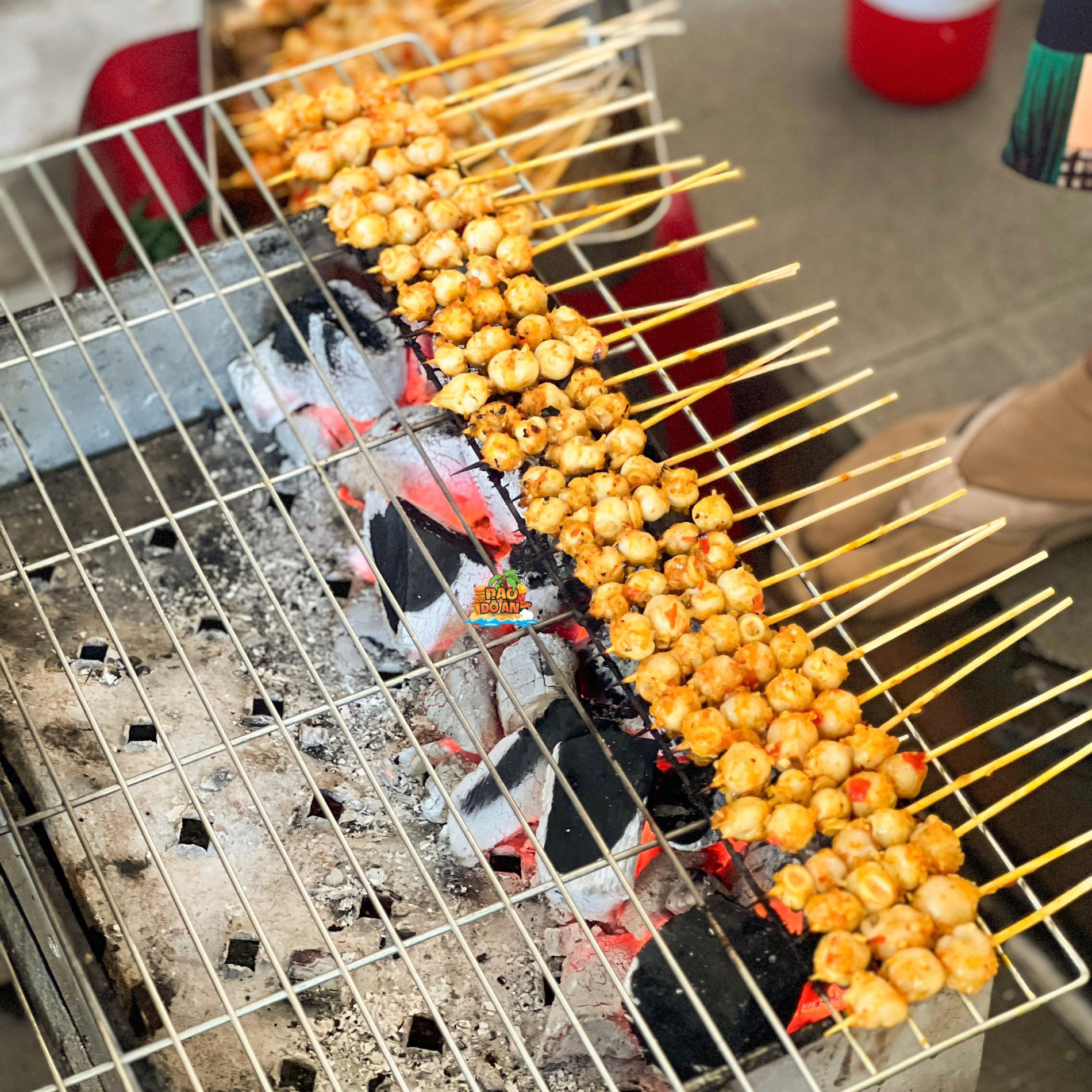 To make the grilled version, the squid teeth are marinated in a savory blend of lemongrass, garlic, and chili for several hours before being skewered and grilled slowly over charcoal, turned regularly to ensure even cooking. They’re typically served with pickled vegetables, Vietnamese coriander, and a unique dipping sauce depending on the vendor.