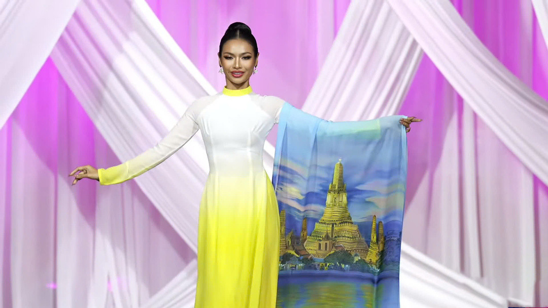 Designer Trung Dinh, alongside skilled artisans, breathed life into the Ao Dai by portraying famous cultural and architectural landmarks such as the Pyramids (Egypt), Petronas Towers (Malaysia), Eiffel Tower (France), Taj Mahal (India), and Angkor Wat (Cambodia). This contributed to a vibrant fashion show that celebrated the spirit and beauty of each nation.