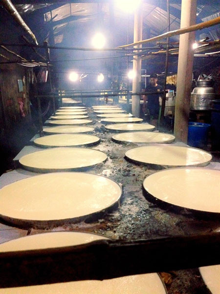 Hoang's workshop is large, with about six rows of ovens, making hundreds of kilograms of tofu skin every day.