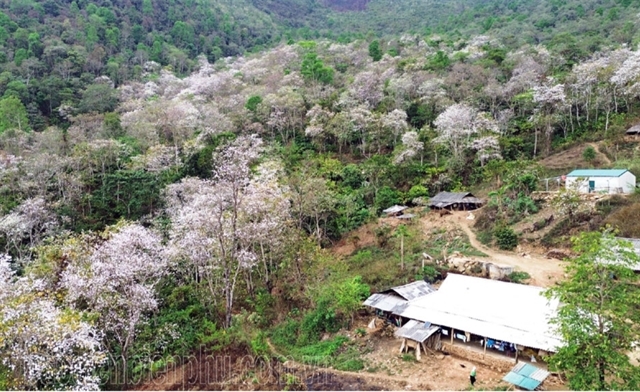 | Many 'ban' trees are grown among houses of ethnic Mông people in Nậm Cứm Village creating a unique beauty for the local area. VNS Photos Anh Nguyễn |