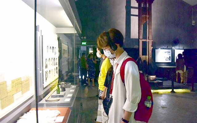 | PAST AND FUTURE: Visitors use automatic narration walkie-talkies when visiting Hỏa Lò Prison in Hà Nội. Photo bvhttdl.gov.vn |