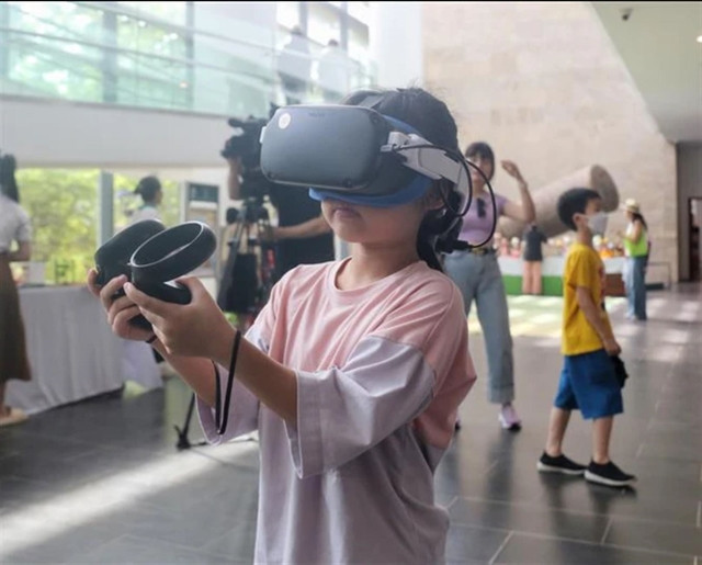 | VIRTUAL REALITY: Children participate in a programme exploring cultural heritage by using modern technology at the Việt Nam Museum of Ethnology. VNA/VNS Photo Tuấn Đức |