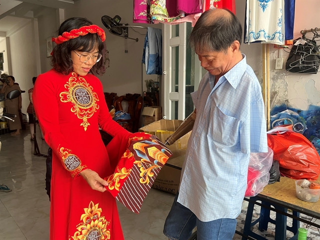 Nguyễn Minh Thư, a customer from Sóc Trăng, says she was introduced to Bảo by her own dress maker and was always very impressed at his decorative painting on her long robes.