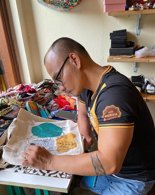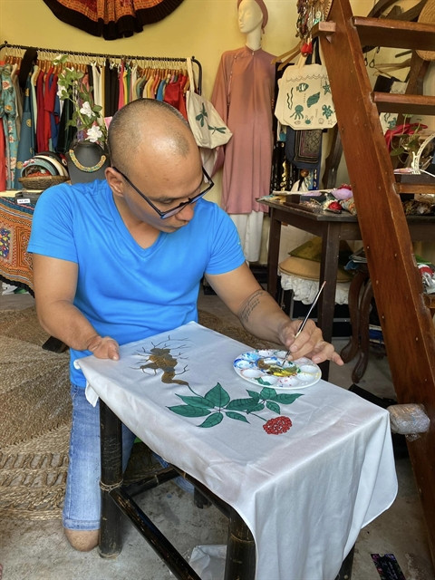 | Painting on cloth to make dresses and hand bags is his passion which brings Nguyễn Hồng Lợi artistic soul and happy life. |