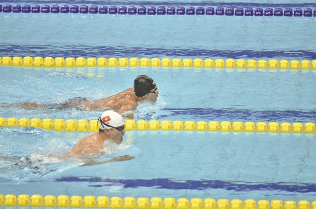 | Lê Tiến Đạt in action in the men's 100m breaststroke SB5 event at the fourth APG. He clocks 1:34.04 to top the podium. — VNS Photo Thái Dương |