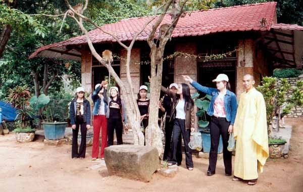 Over 10 years ago, Abbot Thich Thong Luan treated some monkeys and after getting acquainted, they began going down the mountain every day. At first the number was not much, but it is now up to nearly 200.