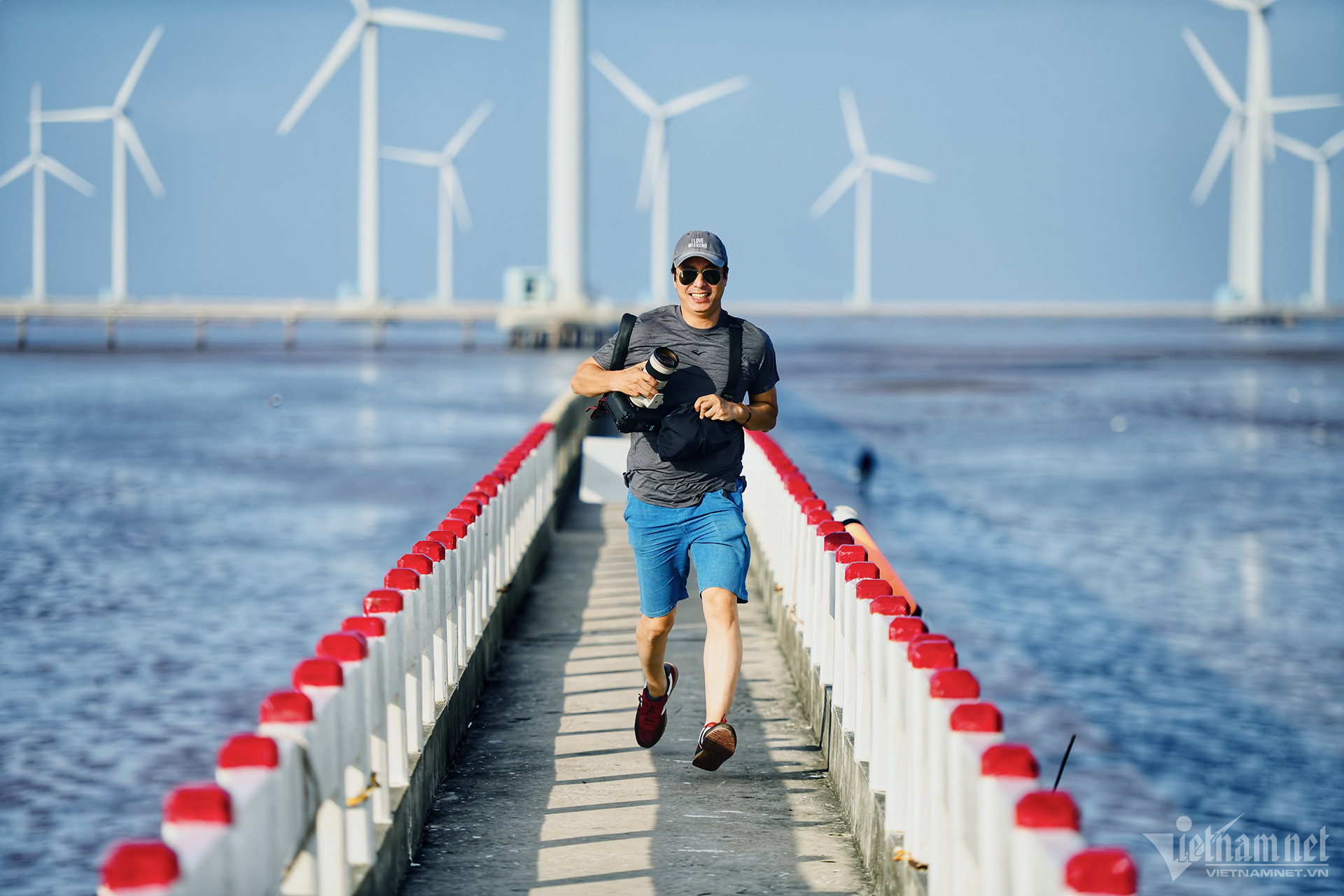 Tourists enjoy visiting the path that leads to the turbines in the middle of the sea. Since first opening in 2016, the wind farm has become a popular check-in point for travelers during their visits to the southern province.