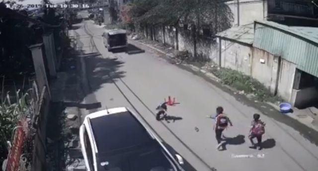 The driver was unaware of the incident and kept on running as the pupils got up and run behind the minibus. Luckily, the street was empty at the time.