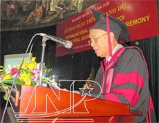 ![]() Prof. PhD Nguyen Quang Rieu in 2010. ![]() Prof. Nguyen Quang Rieu (right) and his German colleague climbed Pico Veleta Mountain (Spain) to observe, using a radio astronomical telescope of the IRAM Institute in 1985. ![]() Prof. Nguyen Quang Rieu at the Onsala Space Observatory (Sweden) in 1982. ![]() Prof. Nguyen Quang Rieu, students and professors of the Paris Observatory congratulated Vietnamese students who successfully defended their theses in astrophysics in 2005. ![]() Prof. Nguyen Quang Rieu at the ceremony bestowing the title of honorary Professor at Vietnam National University, Hanoi in 2010. |
