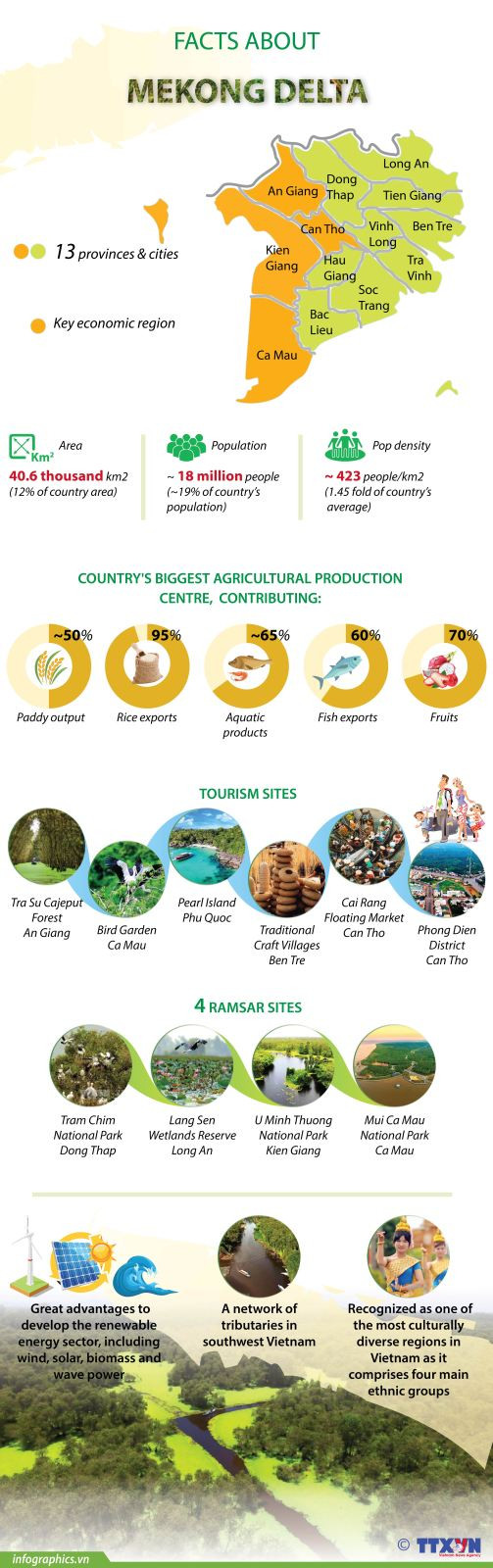 The cluster consists of Ben Tre, Vinh Long, Tien Giang, Tra Vinh, Long An and Dong Thap provinces. Due to the pandemic, it witnessed a significant drop in the number of visitors and was forced to temporarily close tourism services.