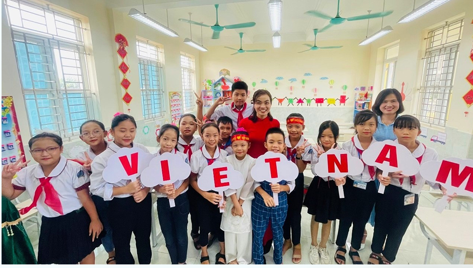 Pham Thi Ha, a teacher of English at Giao Thien Primary School, is the author of the initiative of arranging cross-border lessons.