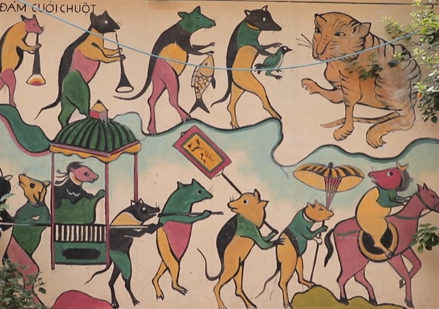 | RAT'S WEDDING: The classic Đông Hồ painting is duplicated on a mural. VNS Photo Nhật Hồng |