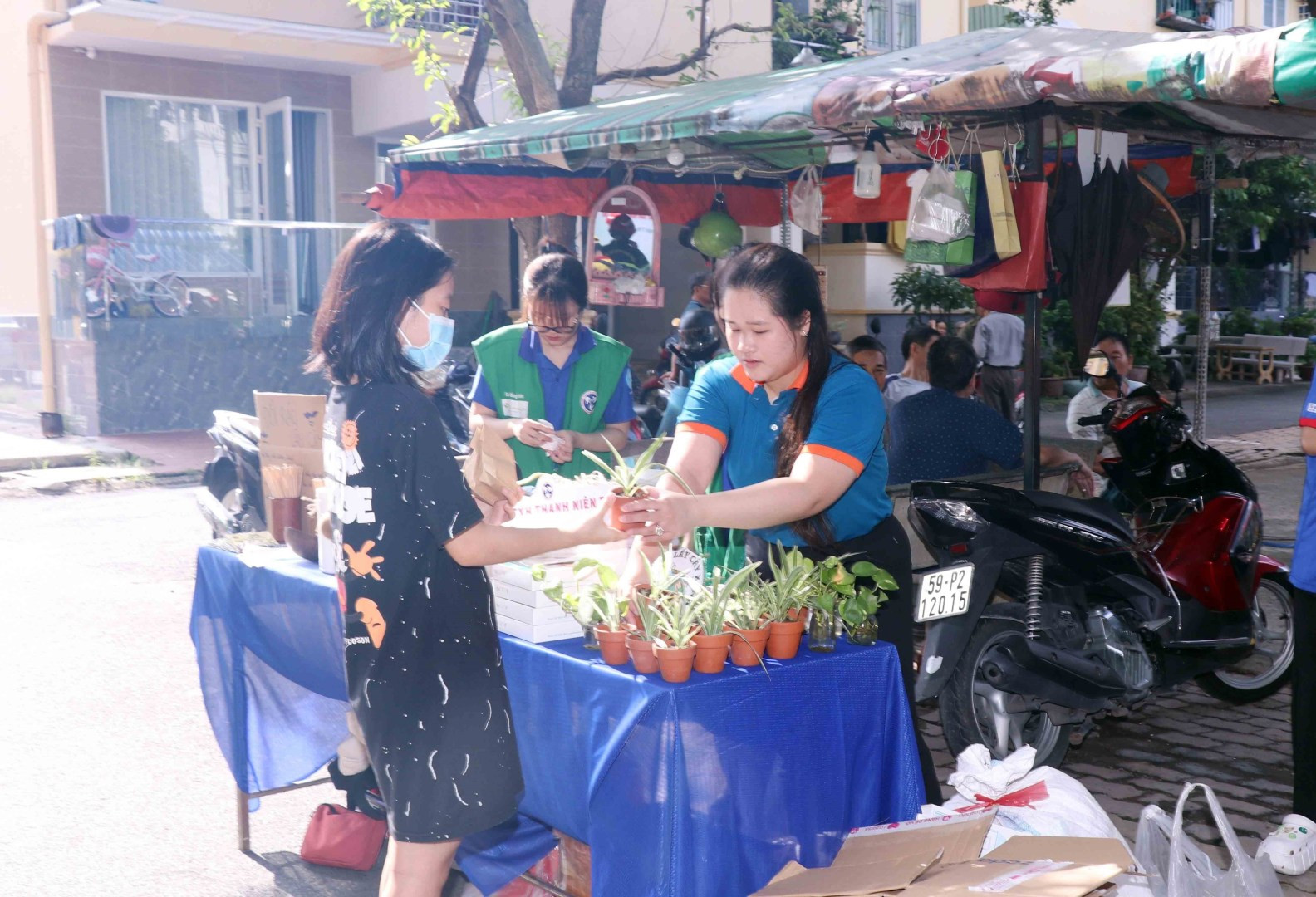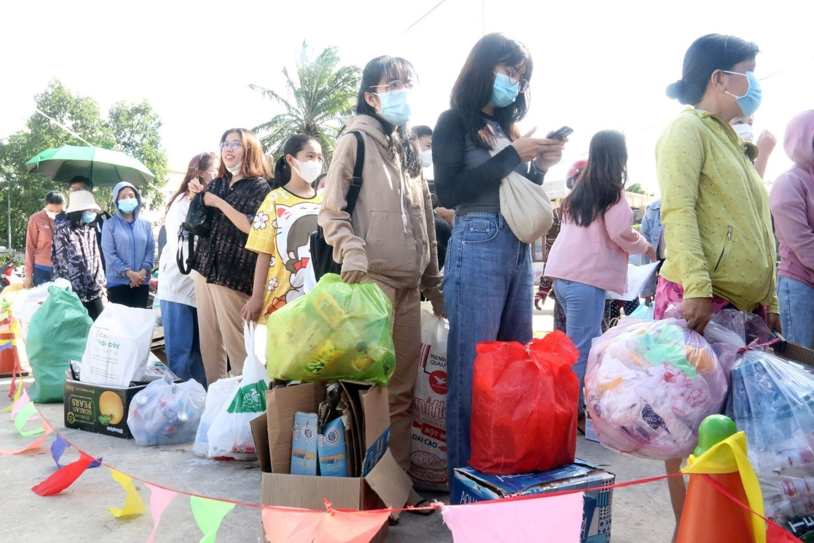 People buy products with plastic waste instead of money in a fair called Cho Chai (Bottle Market) in Tay Ninh province. (Photo: VNA)