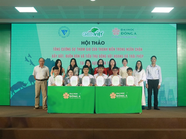 | Students from Đà Nẵng City-based Đông Á University join a conference on wildlife protection and elimination of violations in trafficking and consumption of endangered species. Photo courtesy of Kim Tuyến |
