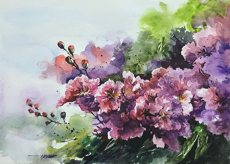 | Bang Lang (Lagerstroemia) Flowers in Hanoi Street. Sketcher: Pham Thanh Son |
