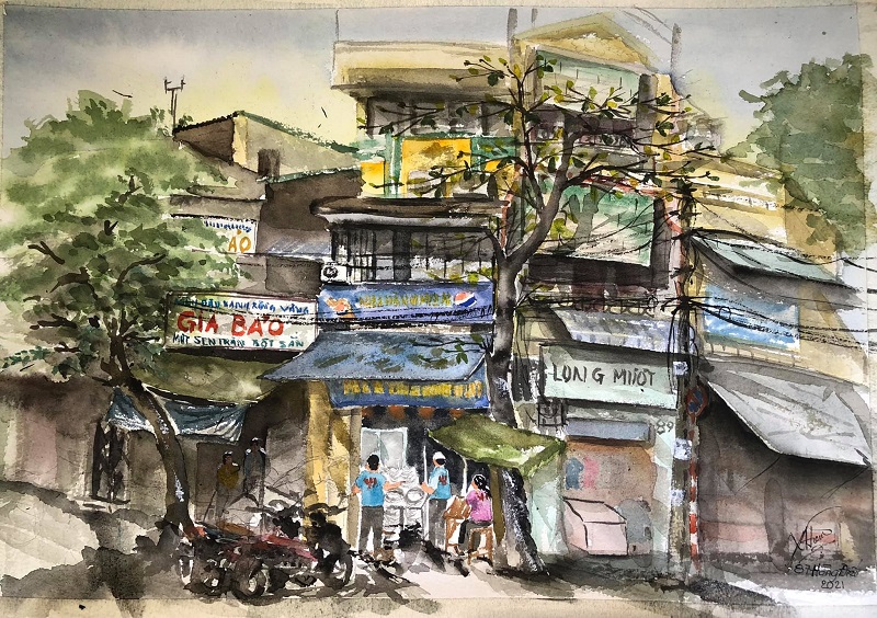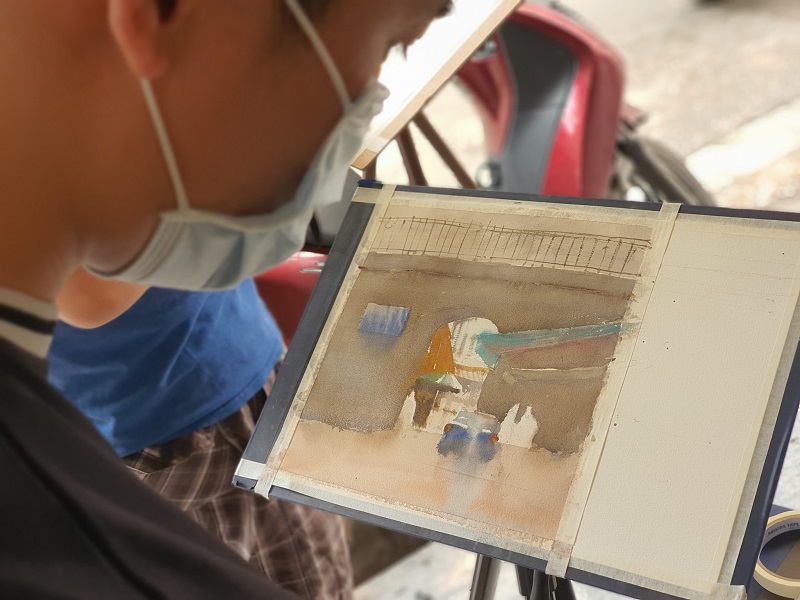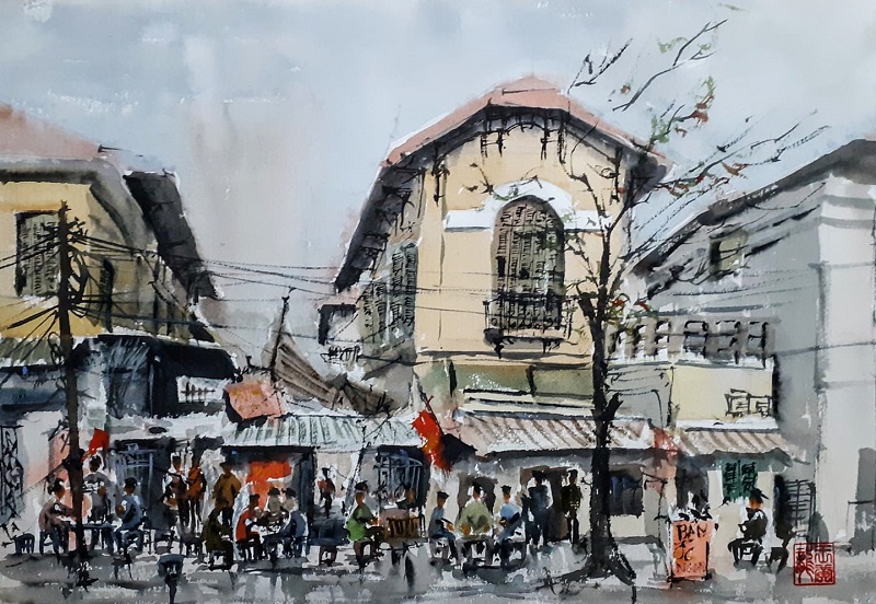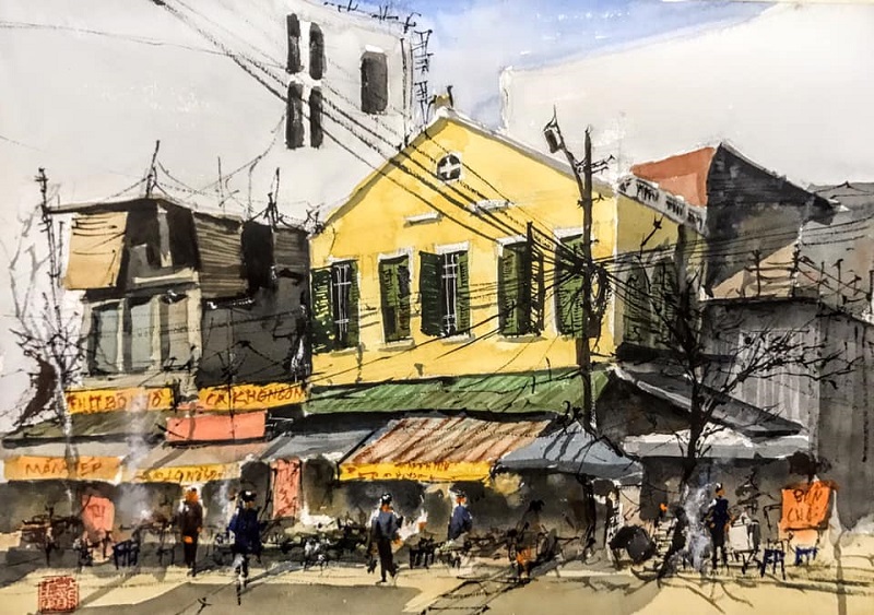 One day at the weekend, you may catch a group of people sitting on the sidewalk in Hanoi, in front of an ancient house, or a small street corner, focusing on easels. They are members of the Urban Sketchers Hanoi (USK Hanoi) who tell the story of the city in their own language of sketching paintings.