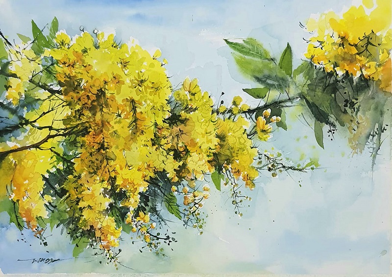 | Muong Hoang Yen (Osaka) Flowers on the bank of the West Lake. Sketcher: Pham Thanh Son |