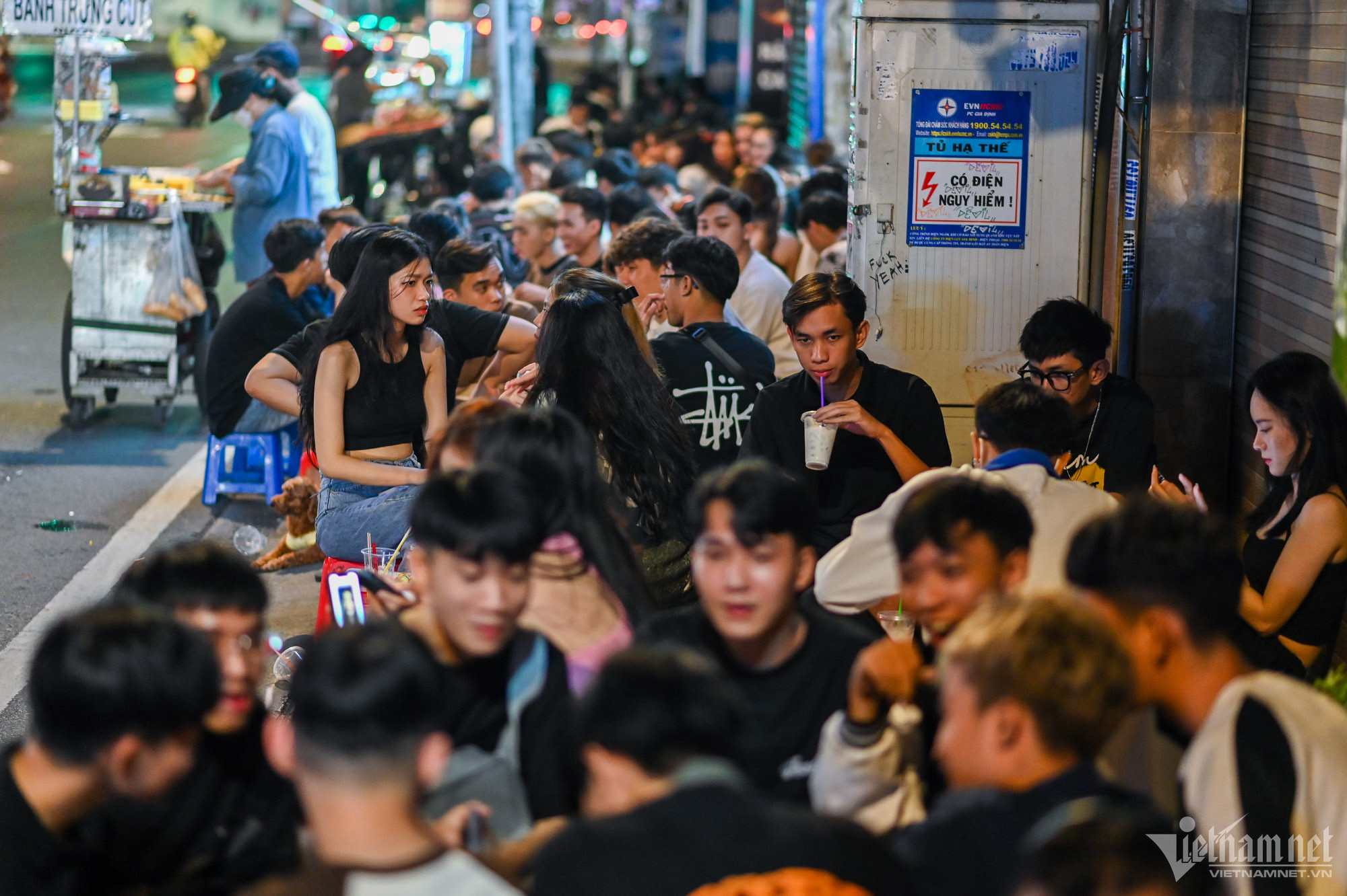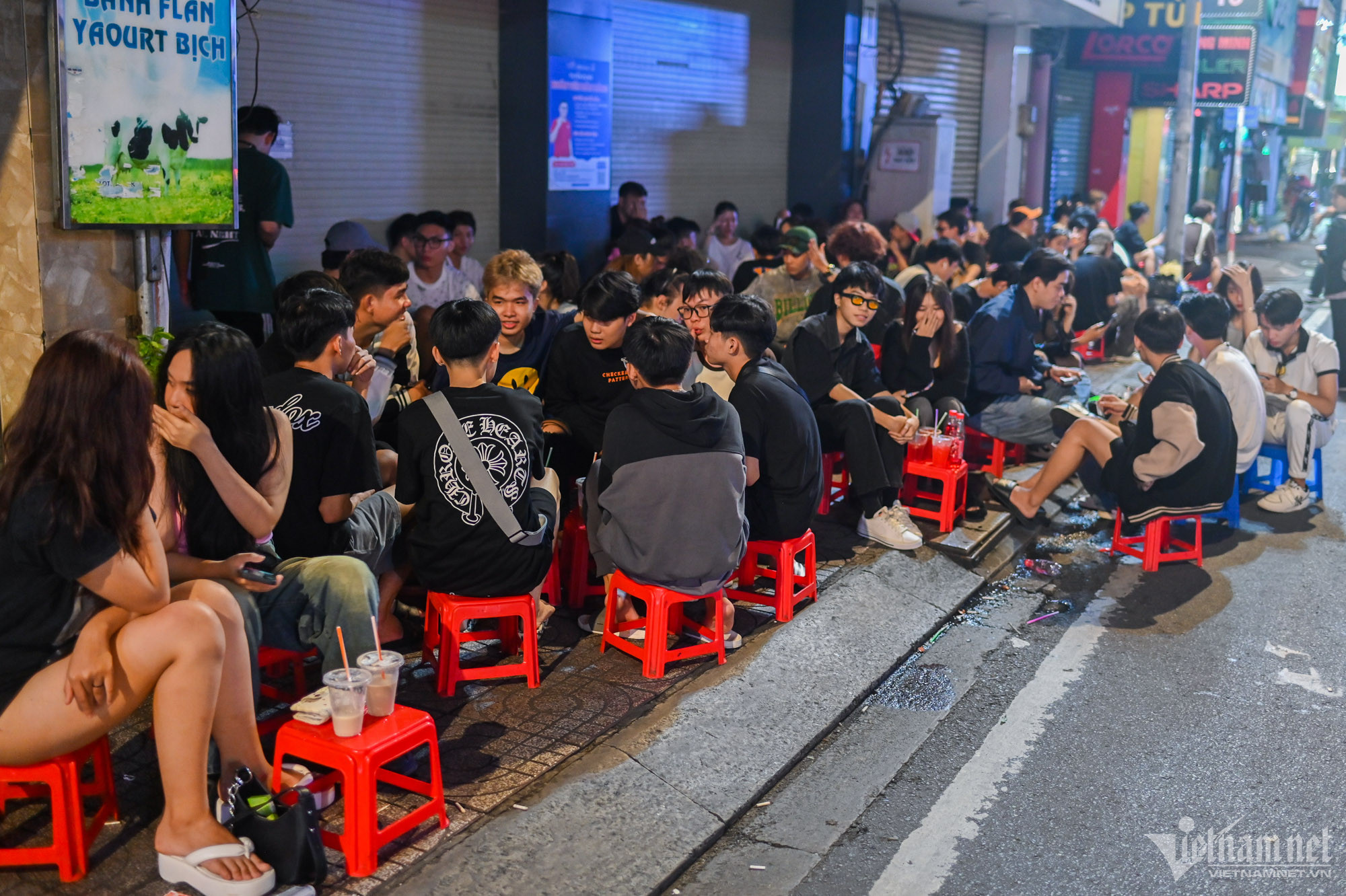 Many young people and tourists love to gather at night at a sidewalk coffee shop on Phan Dinh Phung Street in Phu Nhuan District to enjoy the quiet and airy space there. The coffee shop opens from early morning until 4 am.