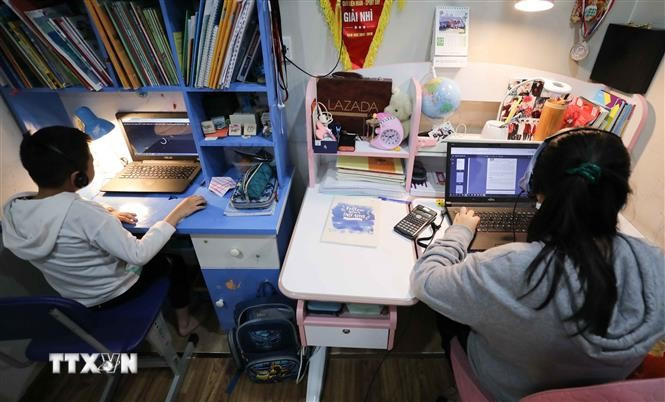 Most of the Vietnamese children access the internet and using digital device from their early ages. (Photo: VNA)