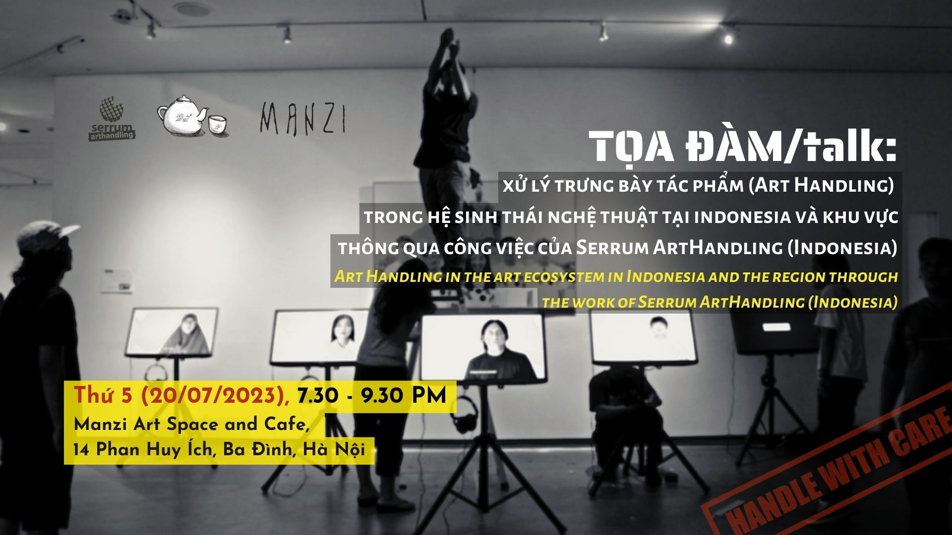Manzi and ba-bau AIR are pleased to invite you to the Talk: “Art Handling in the art ecosystem in Indonesia and the region through the work of Serrum ArtHandling (Indonesia)”. This is the opening event of the “Art Handling Bootcamp 2023” initiated by ba-bau AIR with partners from Museum Technik, Long Bien Art Fair, Á Space and The Outpost.