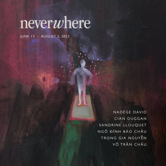 The exhibition brings together six visionary artists – Nadege David, Cian Duggan, Sandrine Llouquet, Ngo Dinh Bao Chau, Trong Gia Nguyen, and Vo Tran Chau – who invite us on a mesmerizing journey through the intersections of art, science, and spirituality. The title “Neverwhere” borrows from the eponymous novel by Neil Gaiman that depicts an unseen world beneath the sewers – LondonBelow– where strange destinies await, suggesting the idea of a physical space that does not yet exist in time.