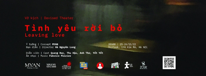 Devised Theater Leaving Love is also part of the program “Poetry, the Poetic Current – Open Practice in Contemporary Culture” that includes a talk, roundtable, music poetry night, photo poetry book launch and devised theater performance. The aim is to share and connect the cultural and multimedia art practices that are linked by poetry. The program is initiated by MYAN Poetry & Art, with the support of XplusX Studio, Montauk by LP Club, the Center for Movie Talents Development – TPD, Hanoi Grapevine, Tung Tang Studio, Noirfoto Darkroom-Studio-Gallery and Heart ZoukDance.