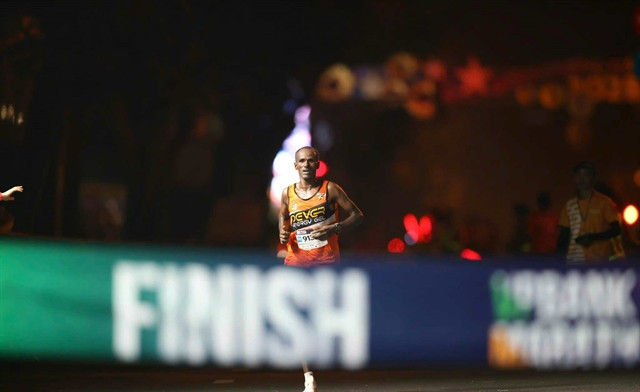 | Wendwesen Damte wins the third VPBank VnExpress Marathon HCM City Midnight 2025 in his first time running in Việt Nam. — Photos courtesy of VnExpress |