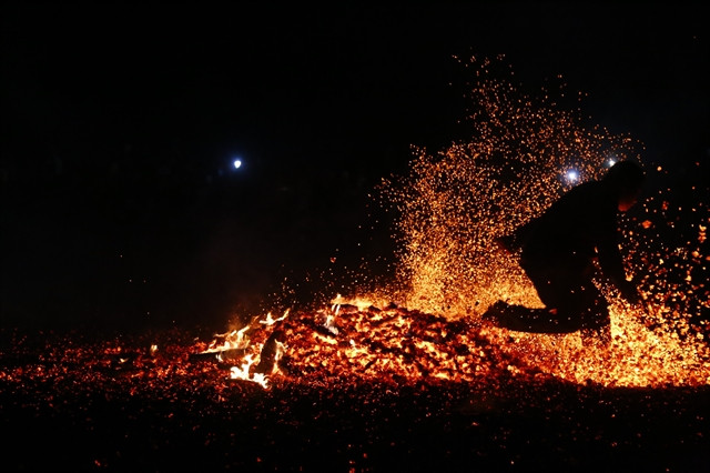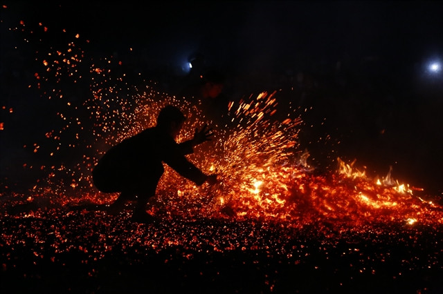 Young men will then jump over a coal fire without any fears and come away unscathed. They also kick up the coal pile to startle those watching. Sometimes they dig up live coals with their hands or put a live coal in their mouth.