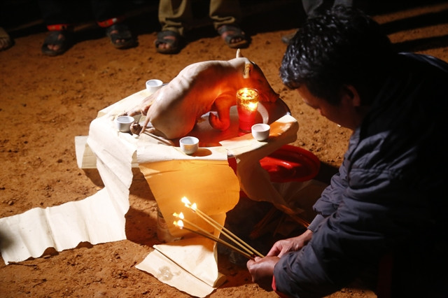| The ritual includes a praying ceremony with a number of shamans worshipping the Fire God for luck, happiness, health, and peace. — VNA/VNS Photo Nam Sương |