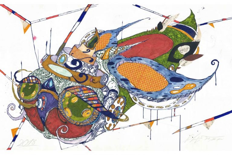Kenny Ng’s first solo exhibition, titled ‘lamina|ink’, will showcase a series of abstract characters, inspired by the diverse shapes and forms of mysterious deep sea organisms, combined with the colonial and old temple architecture of Ho Chi Minh City.