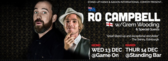 Headlining is UK-based, award-winning Australian comic Ro Campbell who was once controversially crowned Scottish Comedian of the Year. Returning to the stage in Vietnam for the third time, Ro has performed at the last 10 Edinburgh fringe festivals and in well over 30 countries. He’s one of those comics who makes people laugh, more than just out loud, and has even been described in the press as “one of the funniest men on earth”, “top notch” and “effortlessly brilliant”.