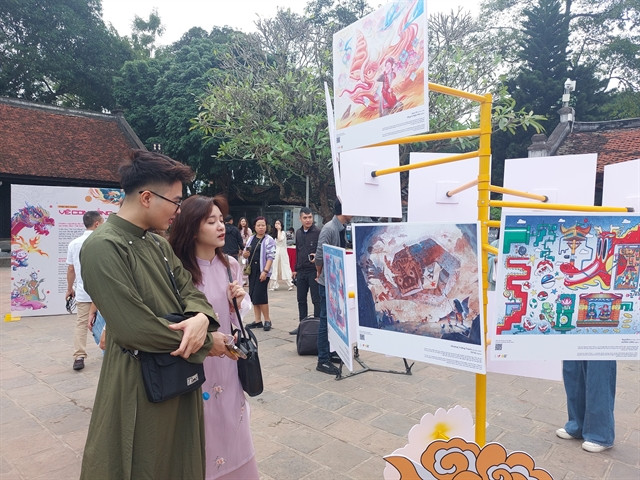 | Vẽ Con Rồng (Draw the Dragon) exhibition is taking place at the Temple of Literature. VNA/VNS Photo Đinh Thuận |