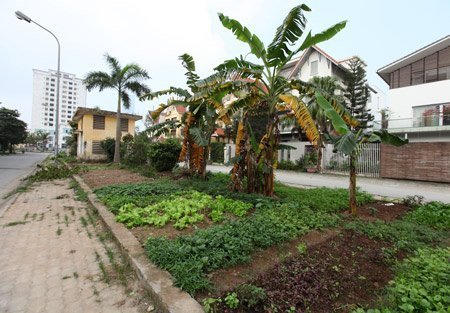 The road separation line of near one kilometer long in the Yen Hoa urban areas also becomes a vegetable garden although it is designed to plant flowers.