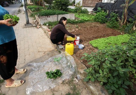 Mrs. Phuong, whose home is far from the vegetable field in Yen Hoa, also owns a small vegetable garden here. She said it is cheaper to buy vegetable from the market but she wanted to ensure to have safe vegetable that is produced by herself.